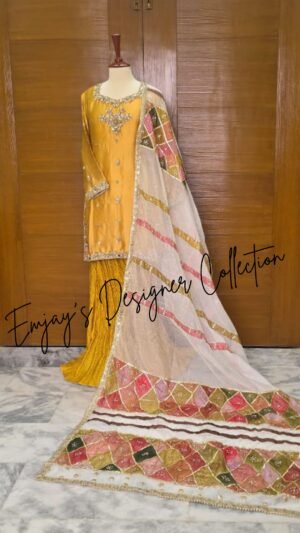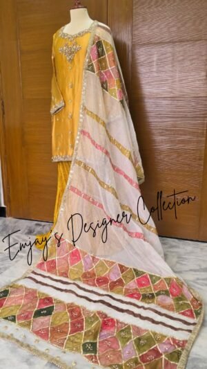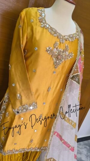This dress was custom-designed for our client in Bahrain with specific attention to her personal preferences and style requirements. The design and embellishments were tailored to deliver an outfit that perfectly matches her vision.
