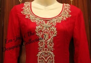 This dress was custom-designed for our client in CANADA with specific attention to her personal preferences and style requirements. The design and embellishments were tailored to deliver an outfit that perfectly matches her vision.