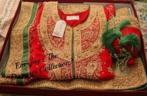 This dress was custom-designed for our client in Pakistani with specific attention to her personal preferences and style requirements. The design and embellishments were tailored to deliver an outfit that perfectly matches her vision.
