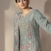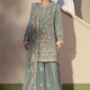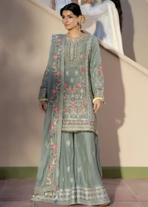 Ethereal in every stitch, this embroidered chiffon shirt glows with hand-embellished adda work on the neckline. Complemented by embroidered sleeves, a detailed chiffon dupatta, and a chiffon sharara framed with a silk embroidered border.