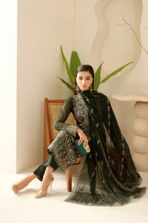 Embroidered chiffon front with sequence