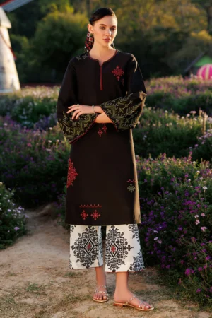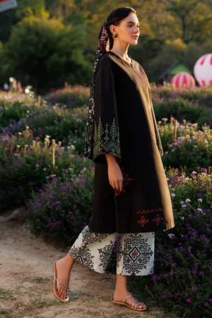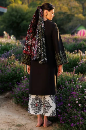 Elevate your wardrobe with this sophisticated three-piece ensemble crafted for refined elegance. The outfit features intricately embroidered lawn on the front and sleeves, showcasing detailed craftsmanship that commands attention. A richly dyed lawn back provides depth and dimension, while the digital printed cambric bottom adds contemporary flair. Completing the set is a stunning tissue silk scarf with digital print detailing, perfect for versatile styling. Ideal for both casual gatherings and formal occasions, this collection merges traditional artistry with modern design sensibilities.